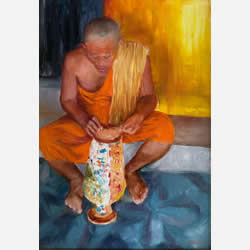 Monje Reparando Jarrón Óleo sobre lienzo. 31 x 40 cm. 2023. $ 150 dólares